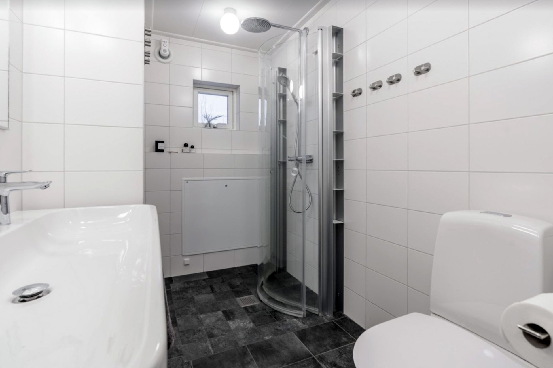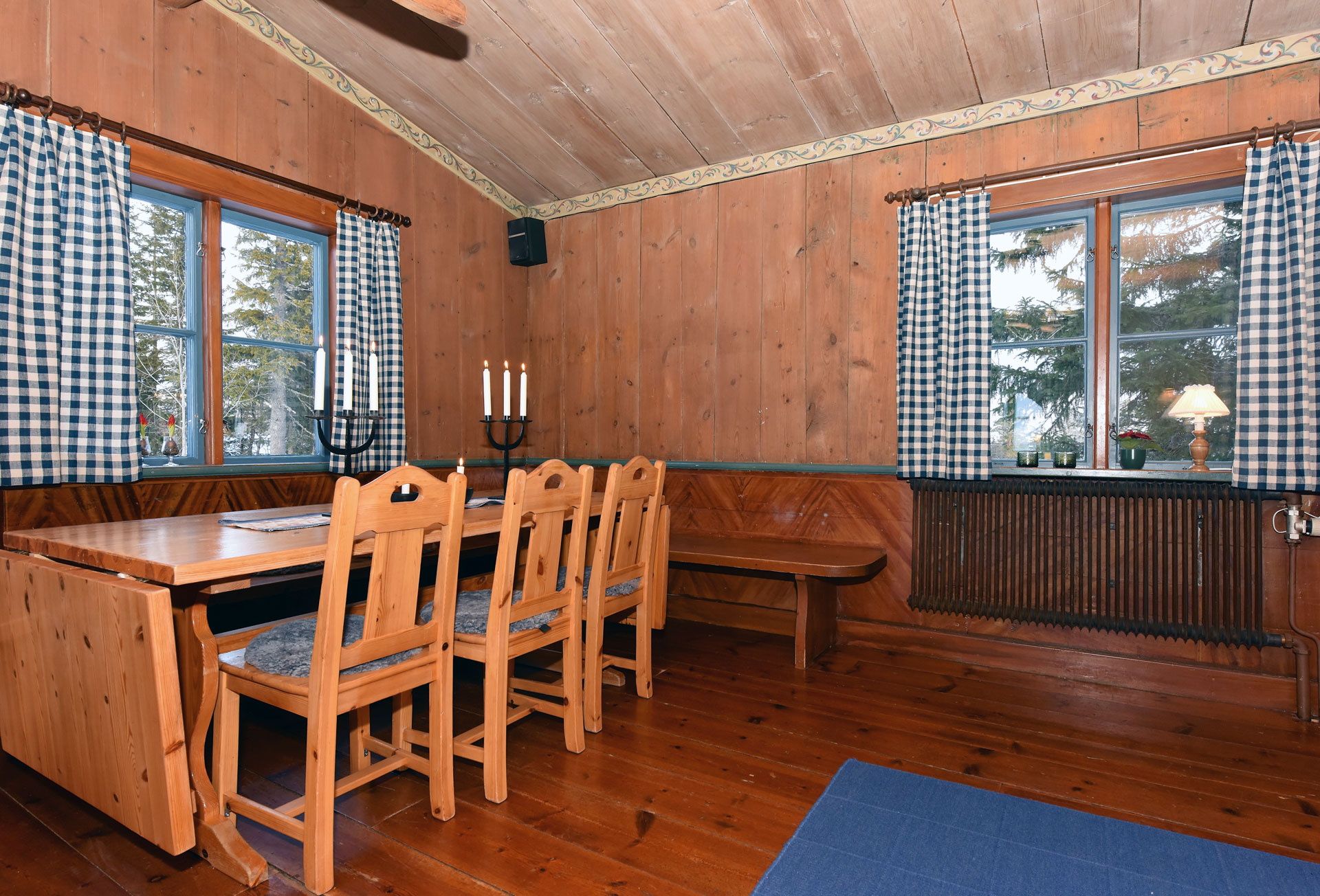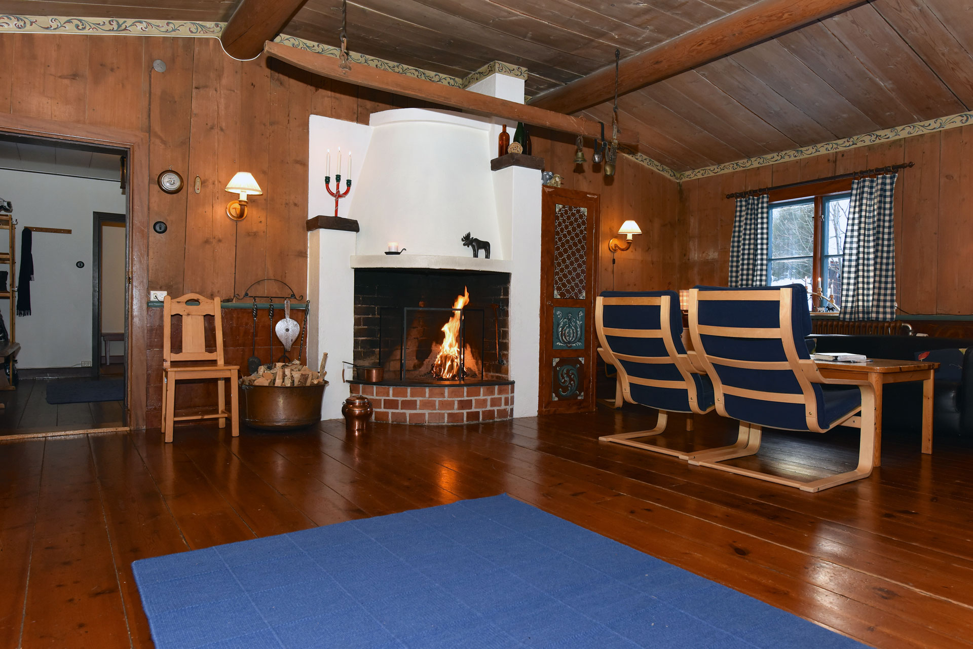 Storstugan gör skäl för namnet med stort långbord, två soffgrupper, stor öppen spis, kabel-TV, samt stereo med radio och CD spelare. Två toaletter och en dusch finns vid hallarna. I källaren finns bastu med dusch, WC och omklädningsutrymme. På utsidan av huset finns låsbart skidförråd. Parkering finns direkt utanför huset. Boytan är totalt ca 150 kvm med ytterligare ca 40 kvm i källaren.